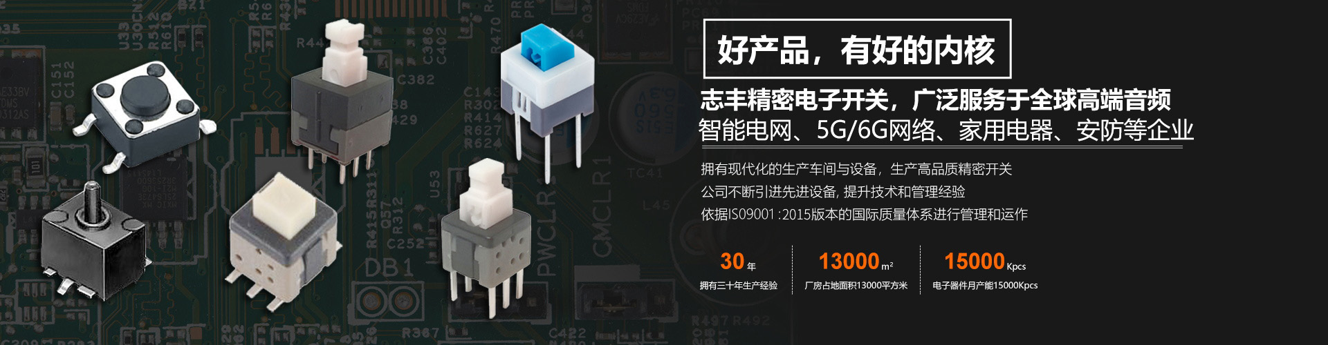涓滆帪婕斾赴鐢靛瓙鏈夐檺鍏徃 鎴戜滑鏄腑鍥界洰鍓嶆渶鍏瘋妯$殑寰瀷寮鍏沖強琛ㄩ潰璐磋寮?SMT)寰瀷寮鍏充笓涓氬埗閫犲伐鍘備箣涓錛?993騫村垱绔嬩簬棣欐腐錛?997騫村湪鍥藉唴寮璁懼埗閫犲伐鍘傦紝鐩墠鎷ユ湁涓滆帪鐢熶駭鍩哄湴鍙婂箍瑗跨帀鏋楃敓浜у熀鍦幫紝涓昏鐮斿彂銆佺敓浜т綆鐢墊祦杞昏Е寮鍏熾佹寜閿紑鍏熾侀槻姘村紑鍏崇瓑錛屼駭鍝佸箍娉涘簲鐢ㄥ湪錛?G緗戠粶鎶鏈丄I鎶鏈駭鍝?wifi6,鏃犱漢鏈虹瓑銆傝繙紼嬫櫤鑳芥帶鍒?鏅鴻兘鐢佃〃浠〃銆佸畨闃叉櫤鑳界郴緇熴傞煶鍝嶈鍚澶?楂樼駭闊沖搷銆佽垶鍙拌澶囧強褰曢煶璁懼銆佽皟闊沖彴絳夈傛櫤鎱х敓媧葷數鍣?鐢靛姩鐗欏埛銆佷釜浜虹編瀹逛繚鍋ヤ華鍙婃櫤鑳芥礂琛f満銆佹櫤鑳藉潗渚垮櫒絳夈?/i> 鏌ョ湅璇︽儏鏂伴椈涓績
